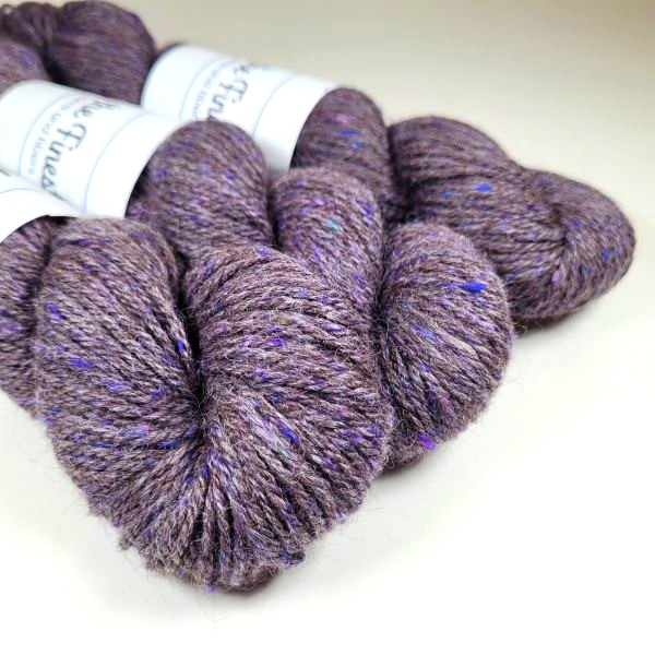 Locally grown and milled in NE Tennessee. This 3-ply worsted-weight yarn is 84% locally grown natural alpaca blended with 10% merino wool and 6% purple tussah silk. Suitable for knitting, crochet, and weaving. Each skein = 165 yds / 3.5 oz