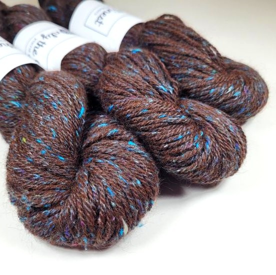 Locally grown and milled in NE Tennessee. This 3-ply worsted-weight yarn is 94% locally grown natural alpaca blended with 6% blue sari silk. Suitable for knitting, crochet, and weaving. Each skein = 190 yds / 3.5 oz